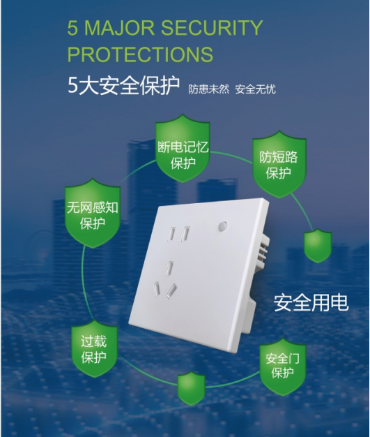 感知用电智能插座作为一种高科技产品,可以实现人来自动通电、离人自动断电;能跟用户的手机关联,可以实现4G通讯,自带芯片,无需wifi,自带免费流量;用户可以在手机上或电脑端平台实现参数设定,分别调整感知智能插座的供电类型、断电时间;可以根据需要,设置电器功率上限数值,当插座接入的电器功率超过设置值时,插座自动切断供电。感知用电智能管理系统,完全可以为民宿提供用电安全保证,免除后顾之忧。