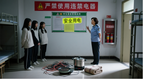 强化违规行为处置:对检查发现的违规电器坚决予以暂扣并登记,对相关学生进行严肃的批评教育,并通报所在院系。将消防安全遵守情况与学生评奖评优、发展党员、诚信考核挂钩,增强制度约束力。