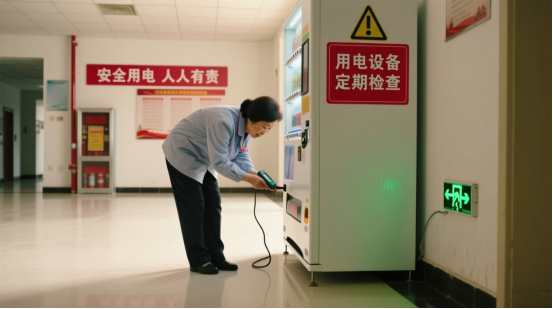 确保用电安全。开展一次宿舍安全卫生大检查,对宿舍内电路、插座进行全面安全检查,发现隐患及时排除;对学生充电宝、插排等常用电器进行一次拉网式检查,坚决清理劣质产品,纠正乱拉电线行为,严禁将电动车电池、平衡车带入室内充电。对宿舍配电室、配电箱、公共区域的售卖机、自助打印机等设备进行严格地检查,排除各类安全隐患。