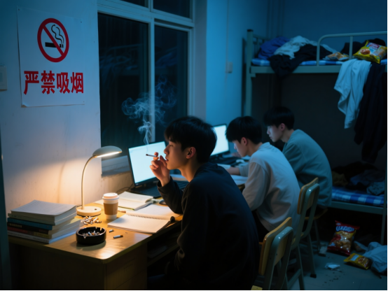 4、管理盲点风险高。学生备考压力大,作息紊乱,消防安全意识容易松懈。乱堆杂物堵塞通道、卧床吸烟、乱扔烟头、使用明火(如蜡烛、熏香)驱困提神等危险行为相对增多。管理人员因工作收尾、评比总结等期末事务缠身,很容易出现巡查疏漏。